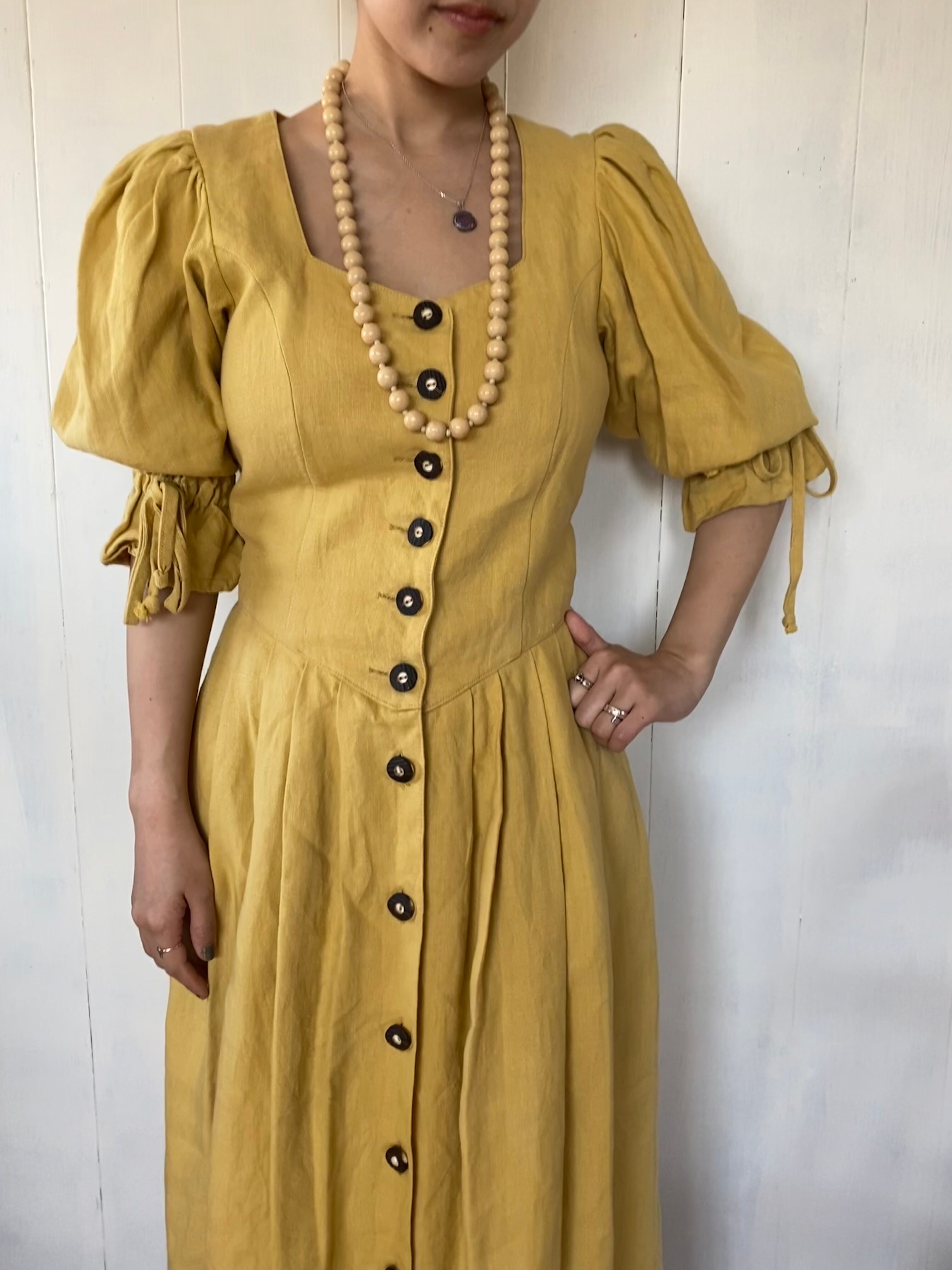 マスタードカラーの無地のチロルワンピースです。