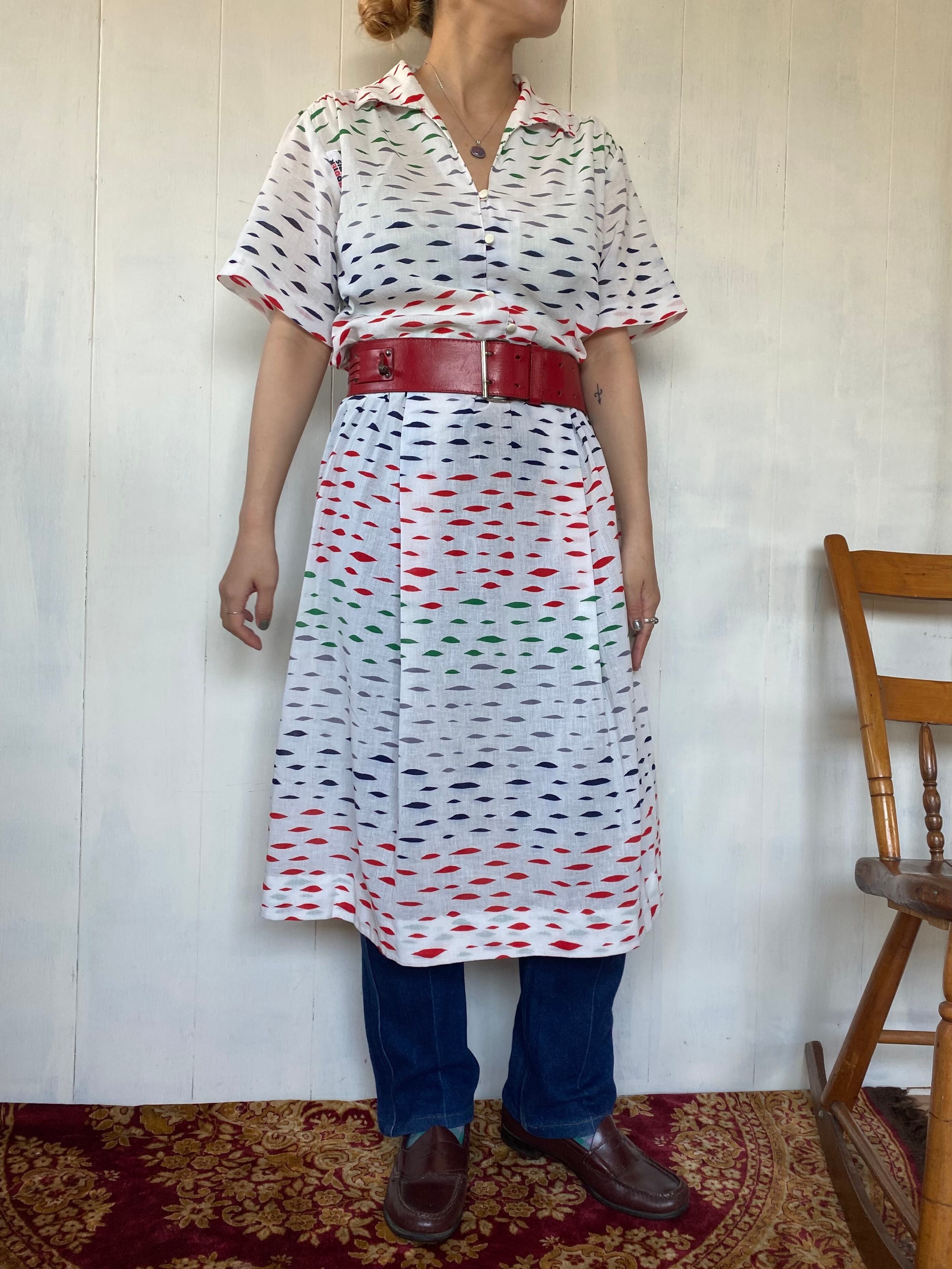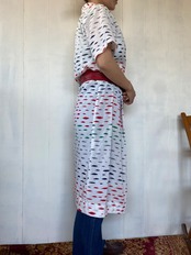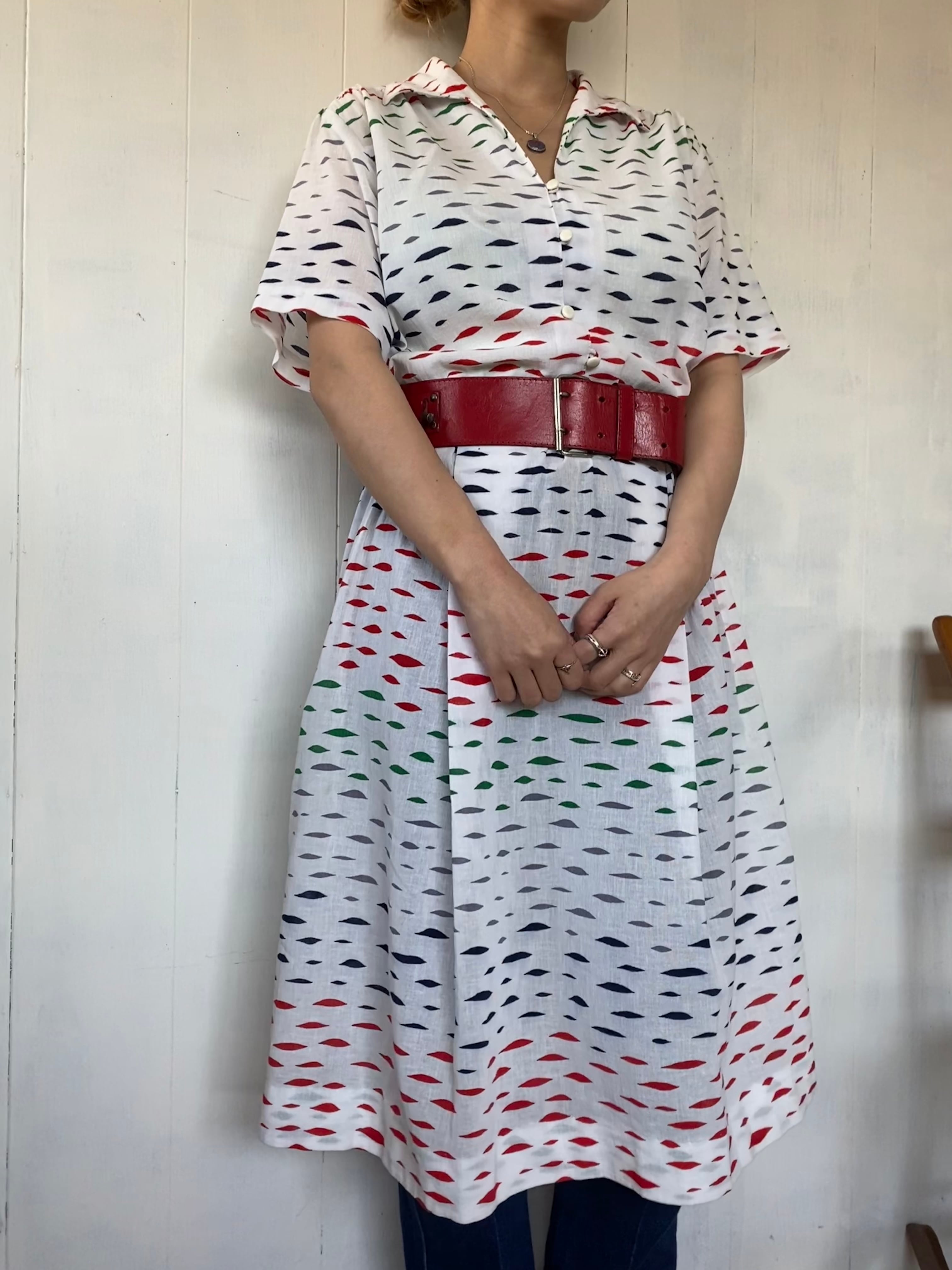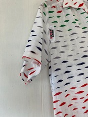 白地にカラフルな柄、珍しいレトロなテキスタイルが目を惹きます。