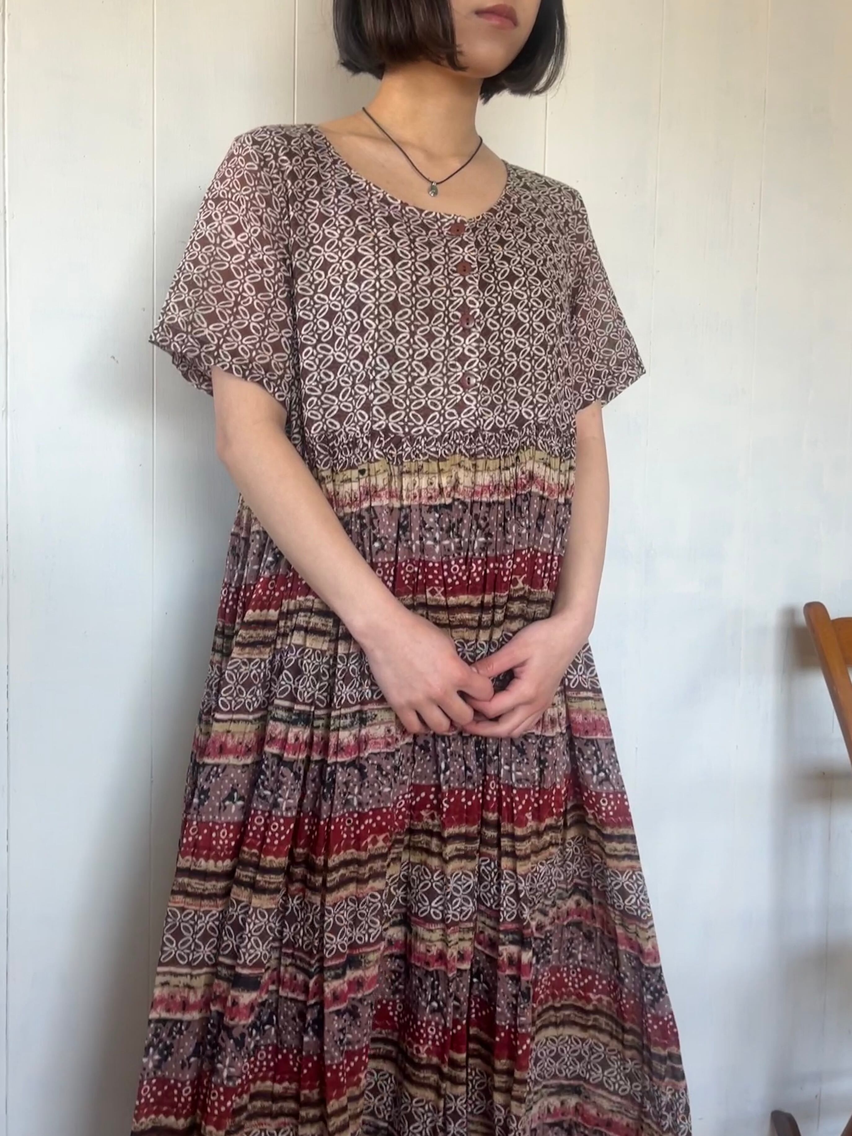 スカート部分はボリュームたっぷりで柄もあるので透け感もさほど気にならず、一枚でさらっと着て頂けますよ♡
