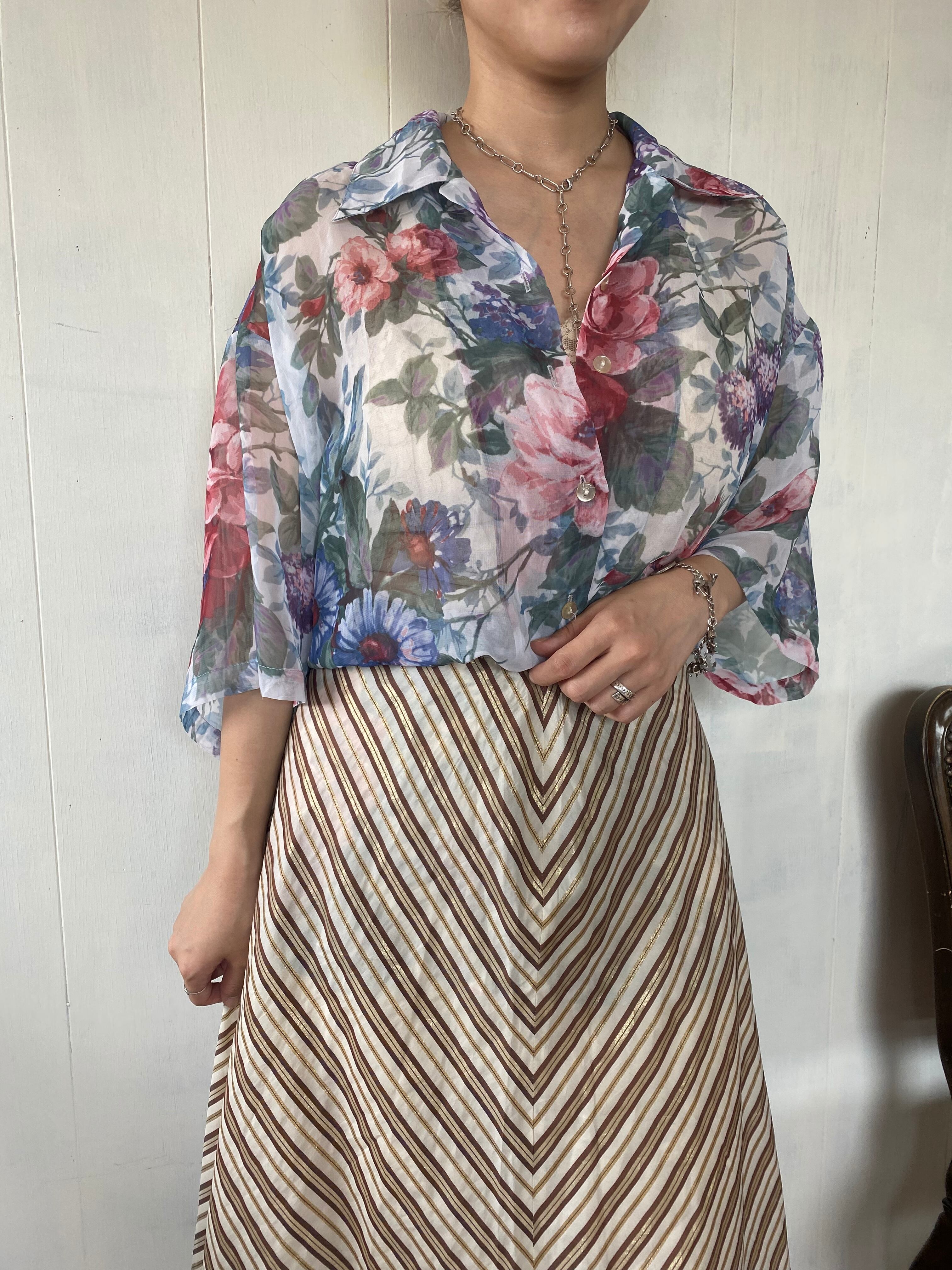 1990's Flower See-through Half Sleeve Shirt