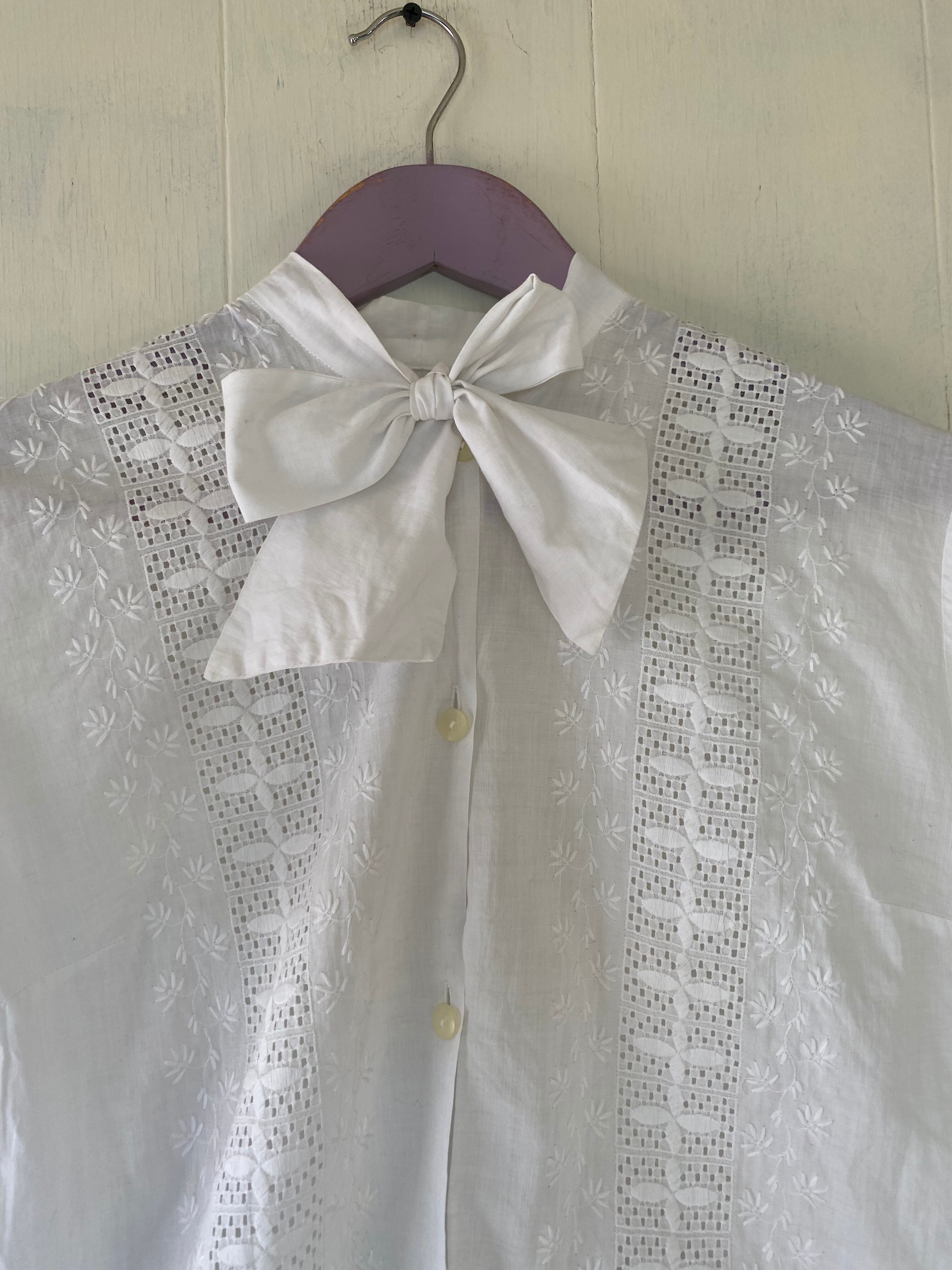 前面に刺繍があしらわれた1950年代ごろのコットンブラウス。