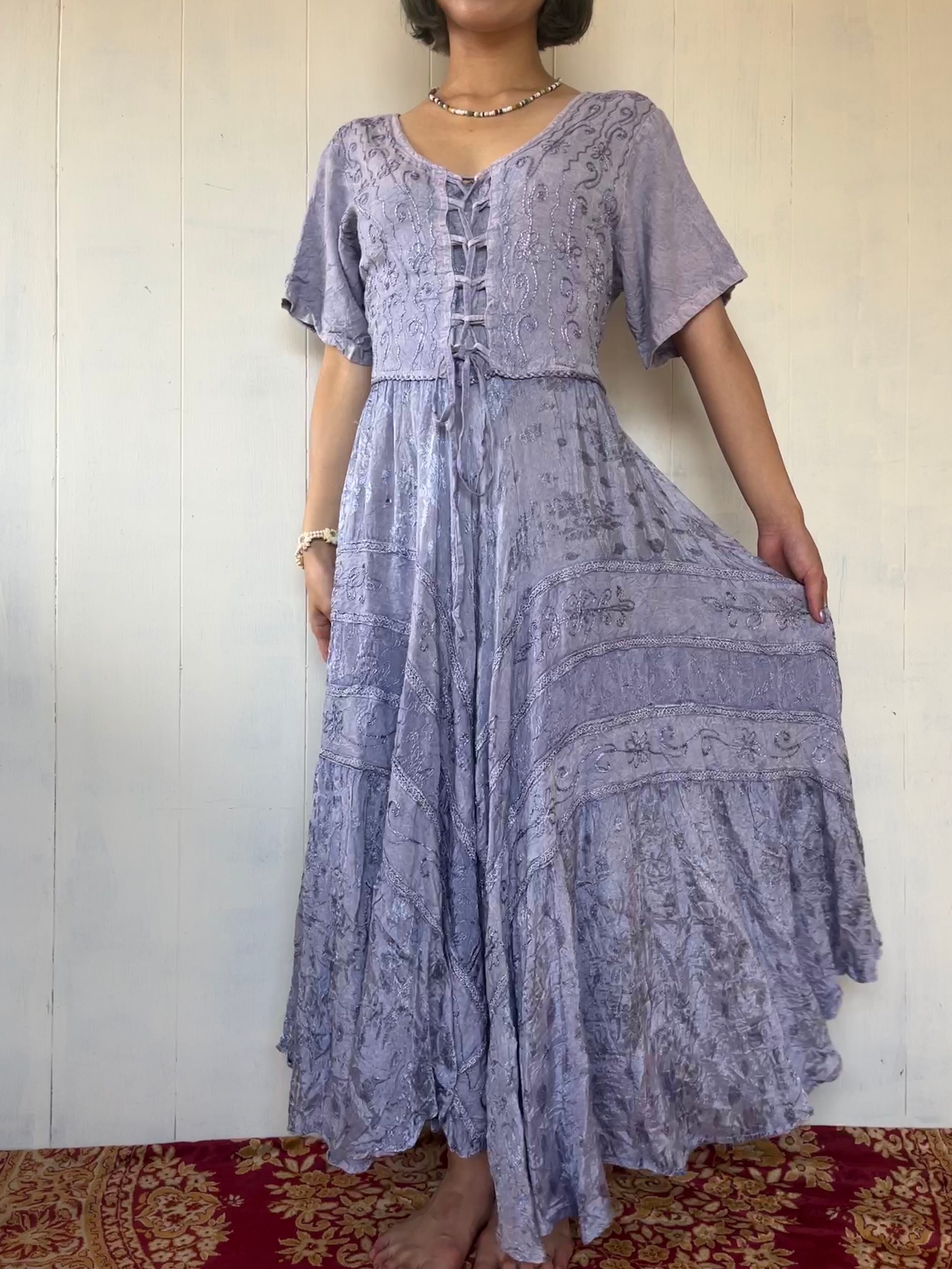 ラベンダーブルーのこちらのドレスはボリュームたっぷりでロマンティックなムードが漂います♡