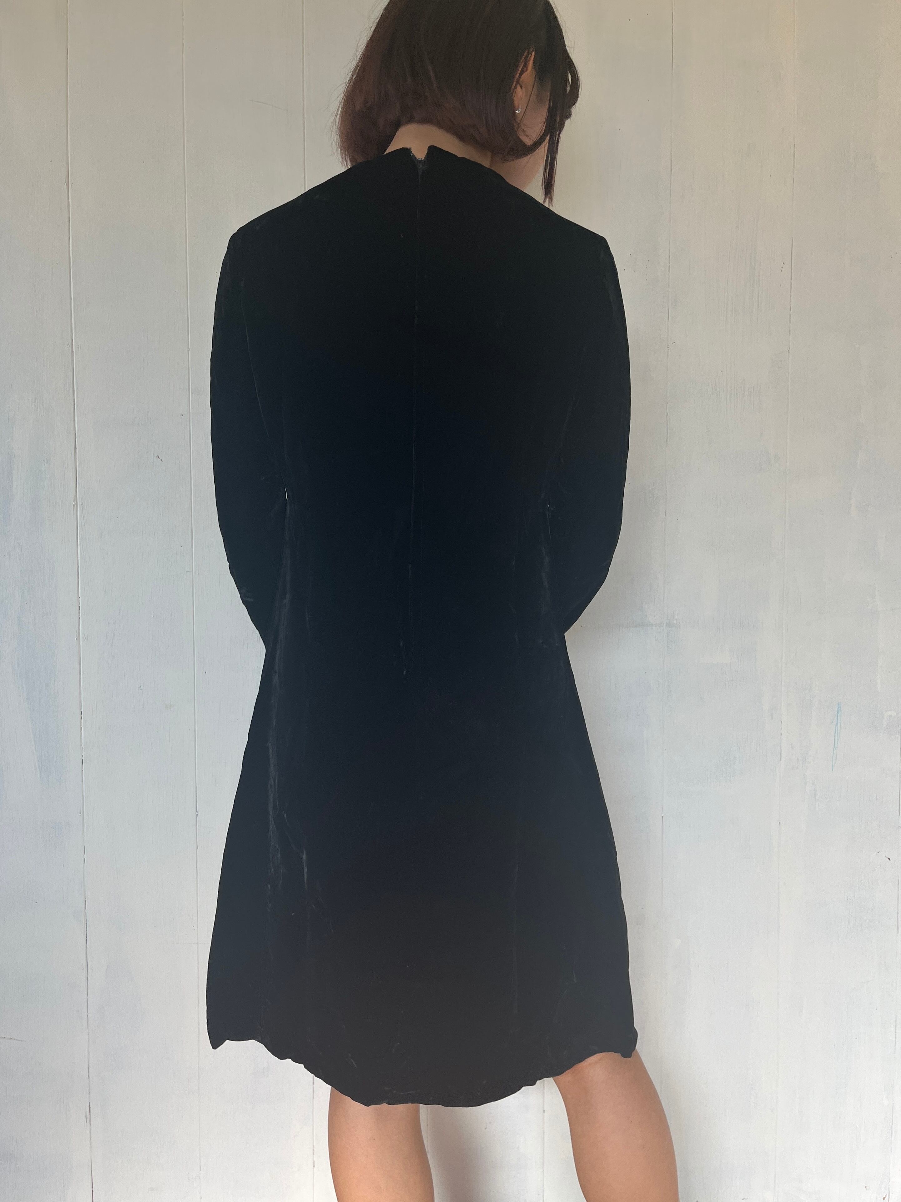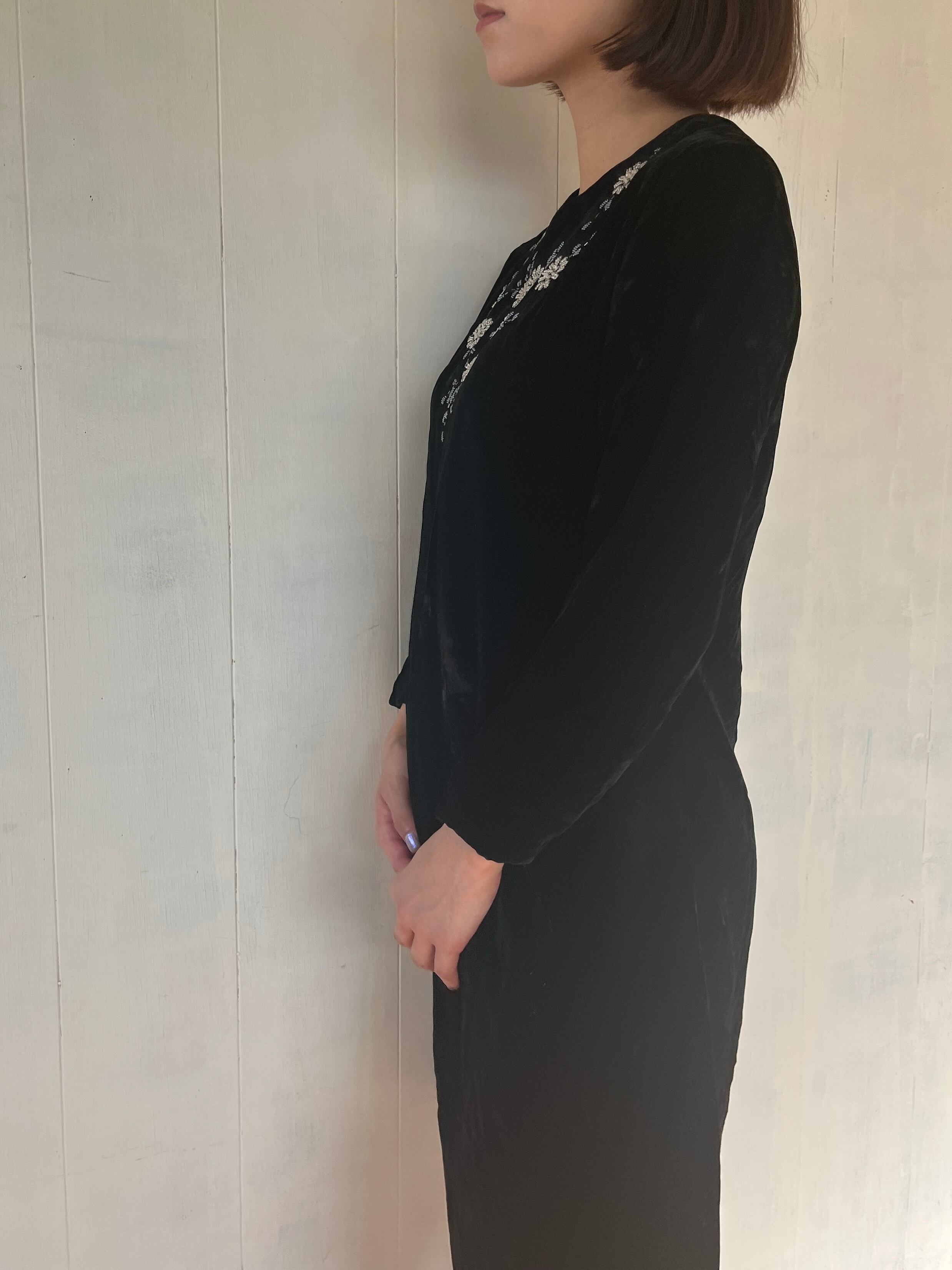 Black Velour Beads Embroidery Dress