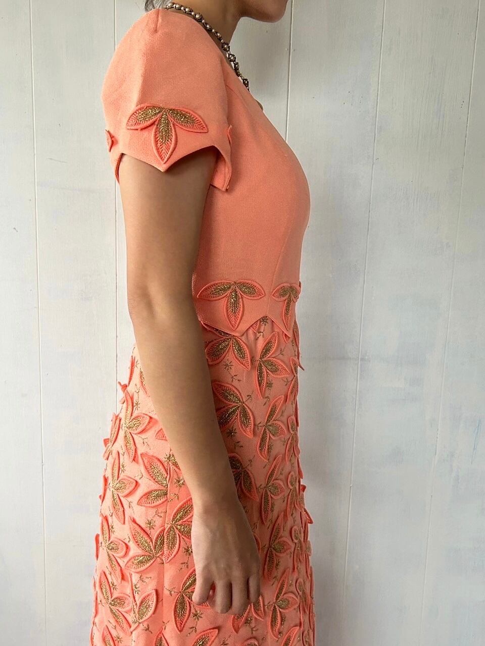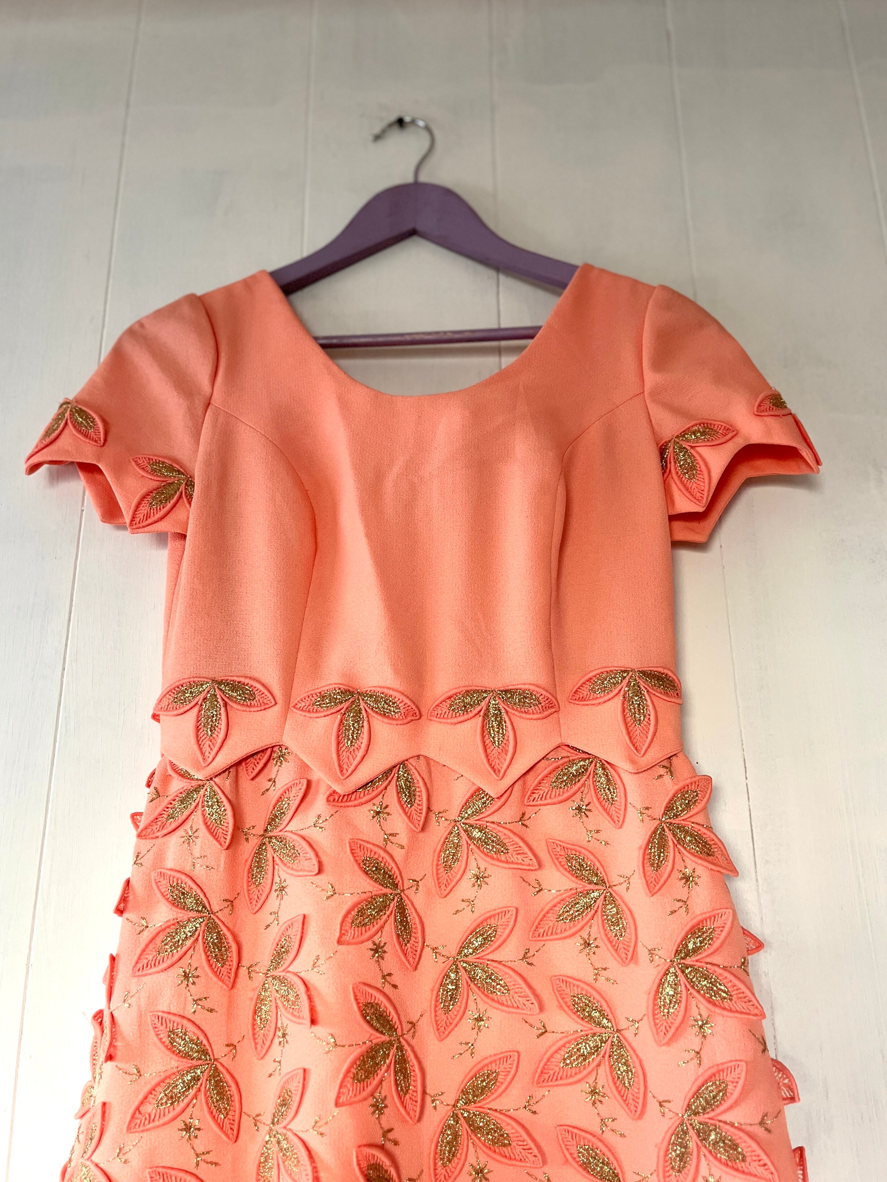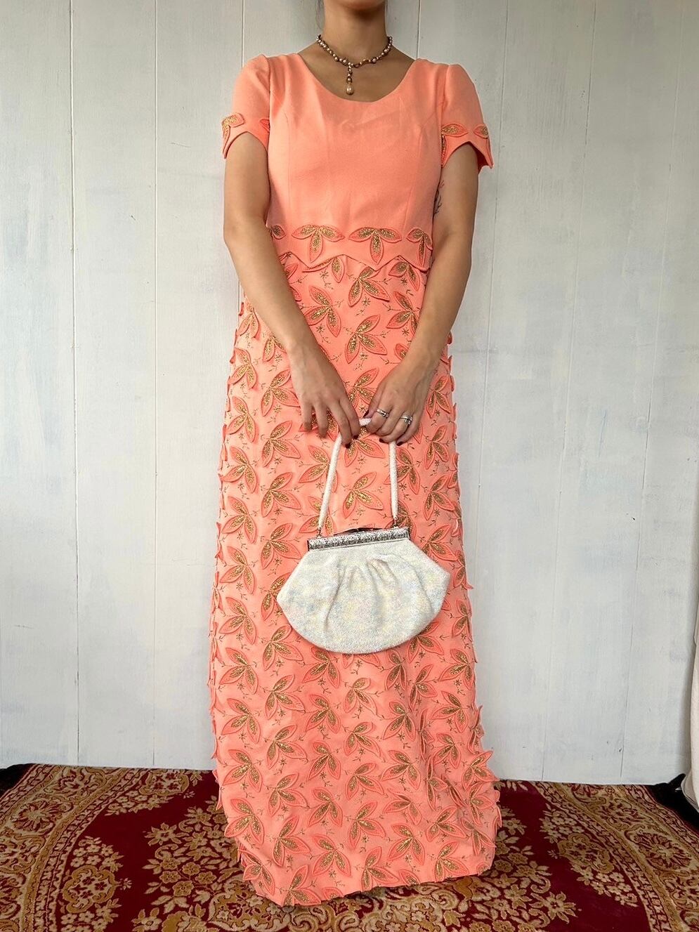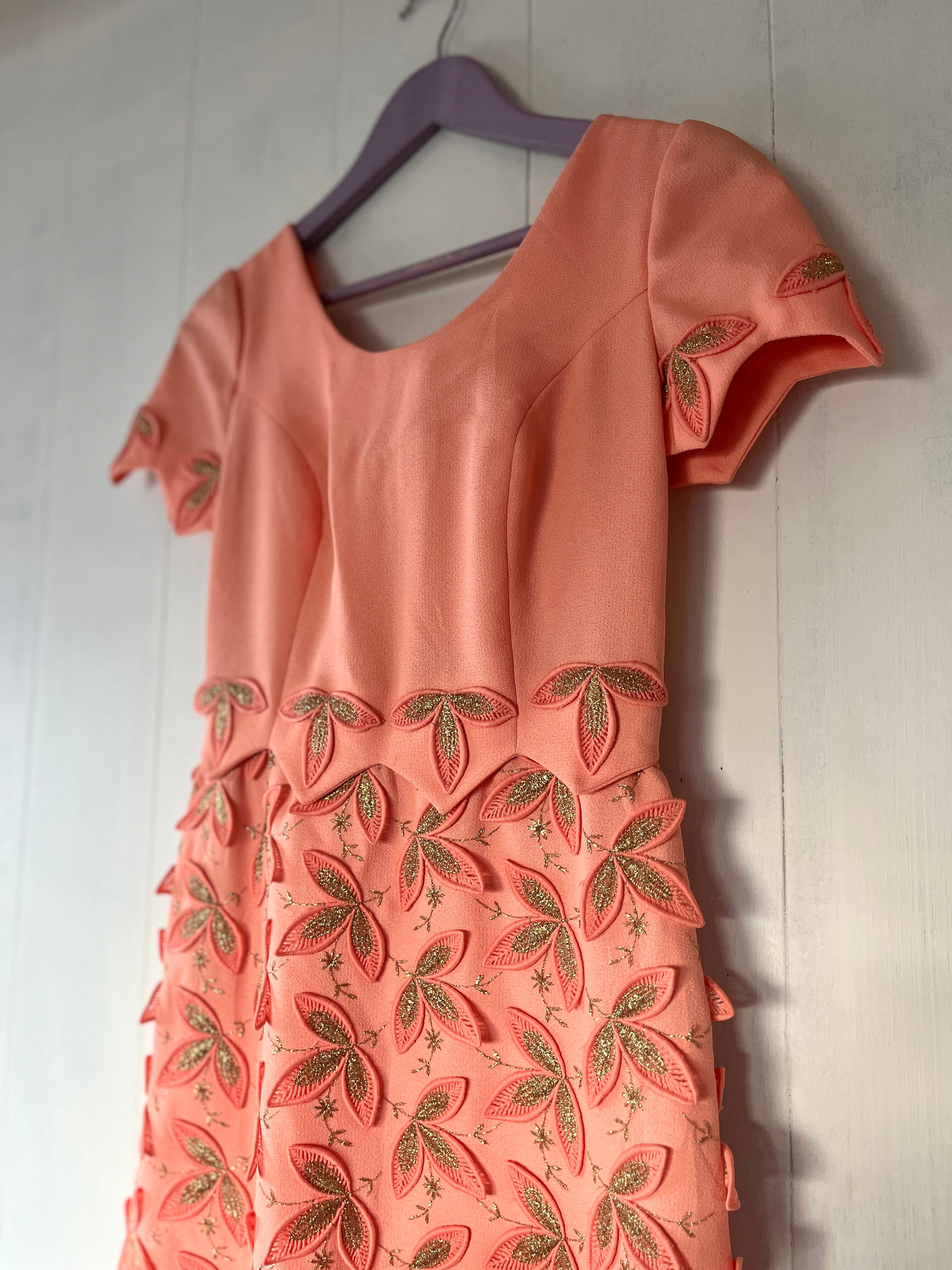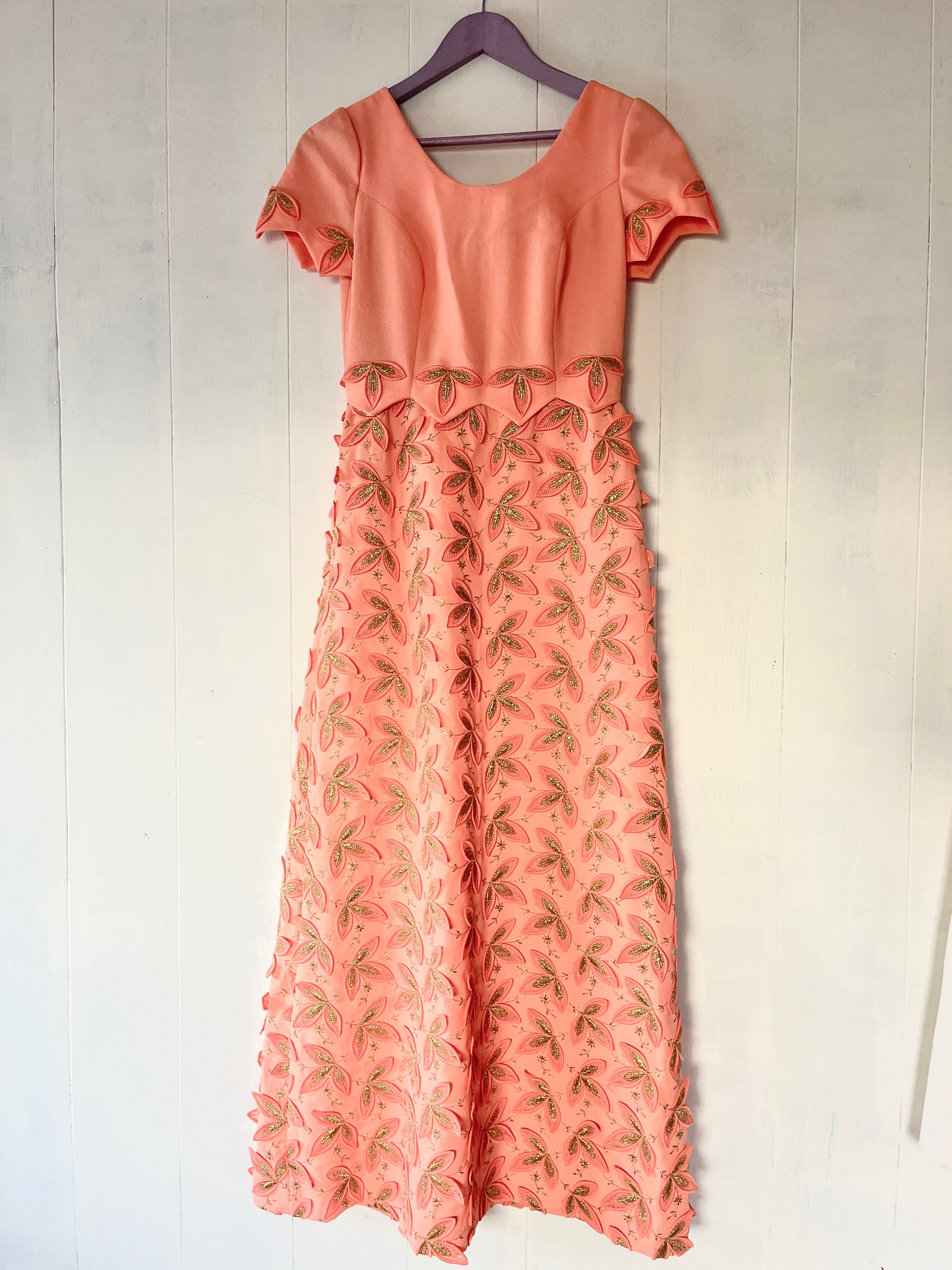 1970's Salmon Orange 3D Design Maxi Dress