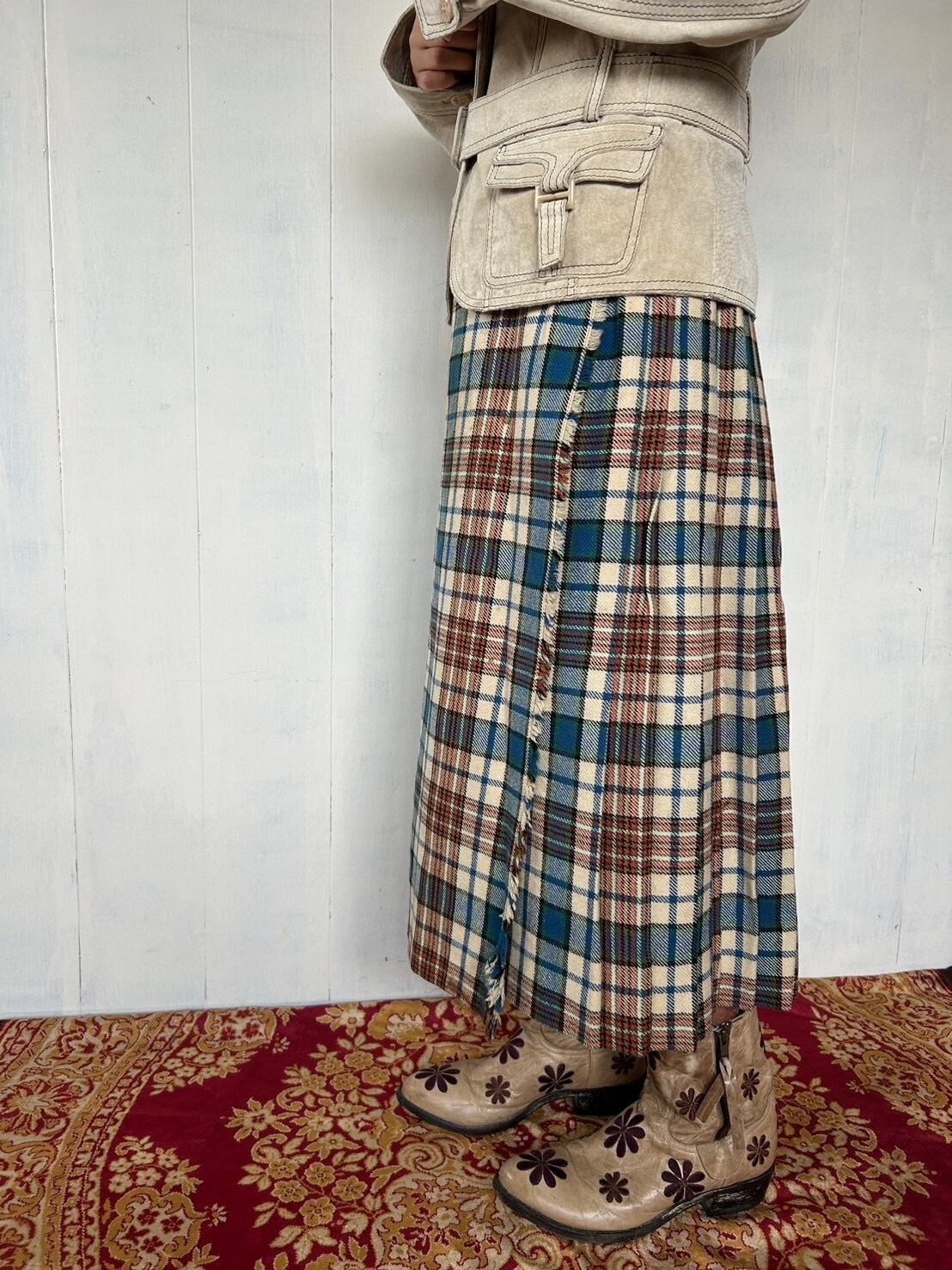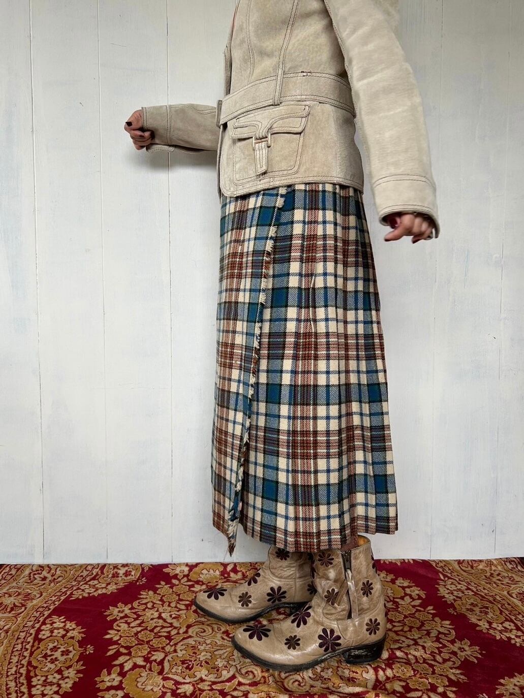 上質なウールを使用したタータンチェック柄の巻きスカート。