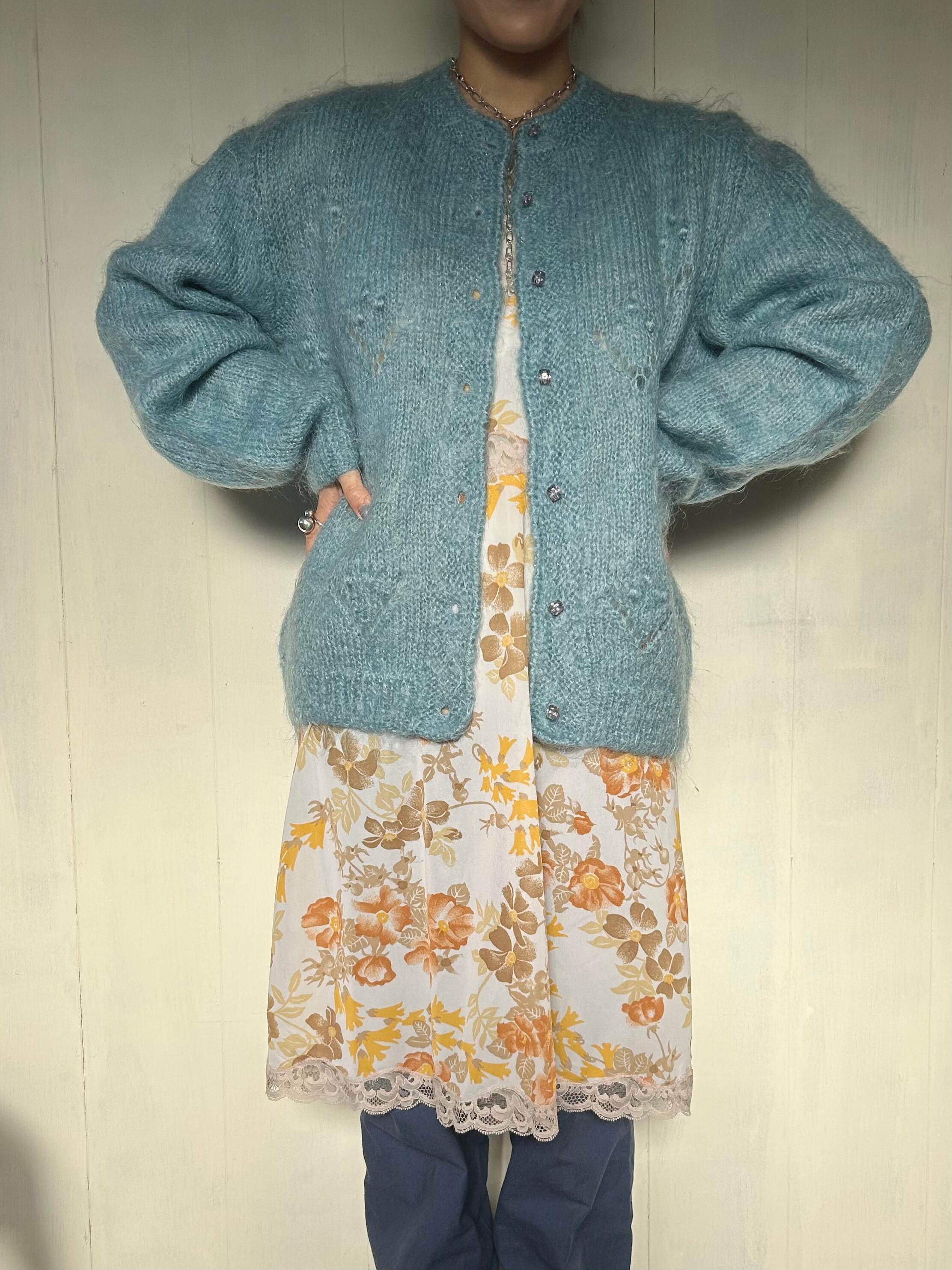 モヘアのハンドニットカーディガン。