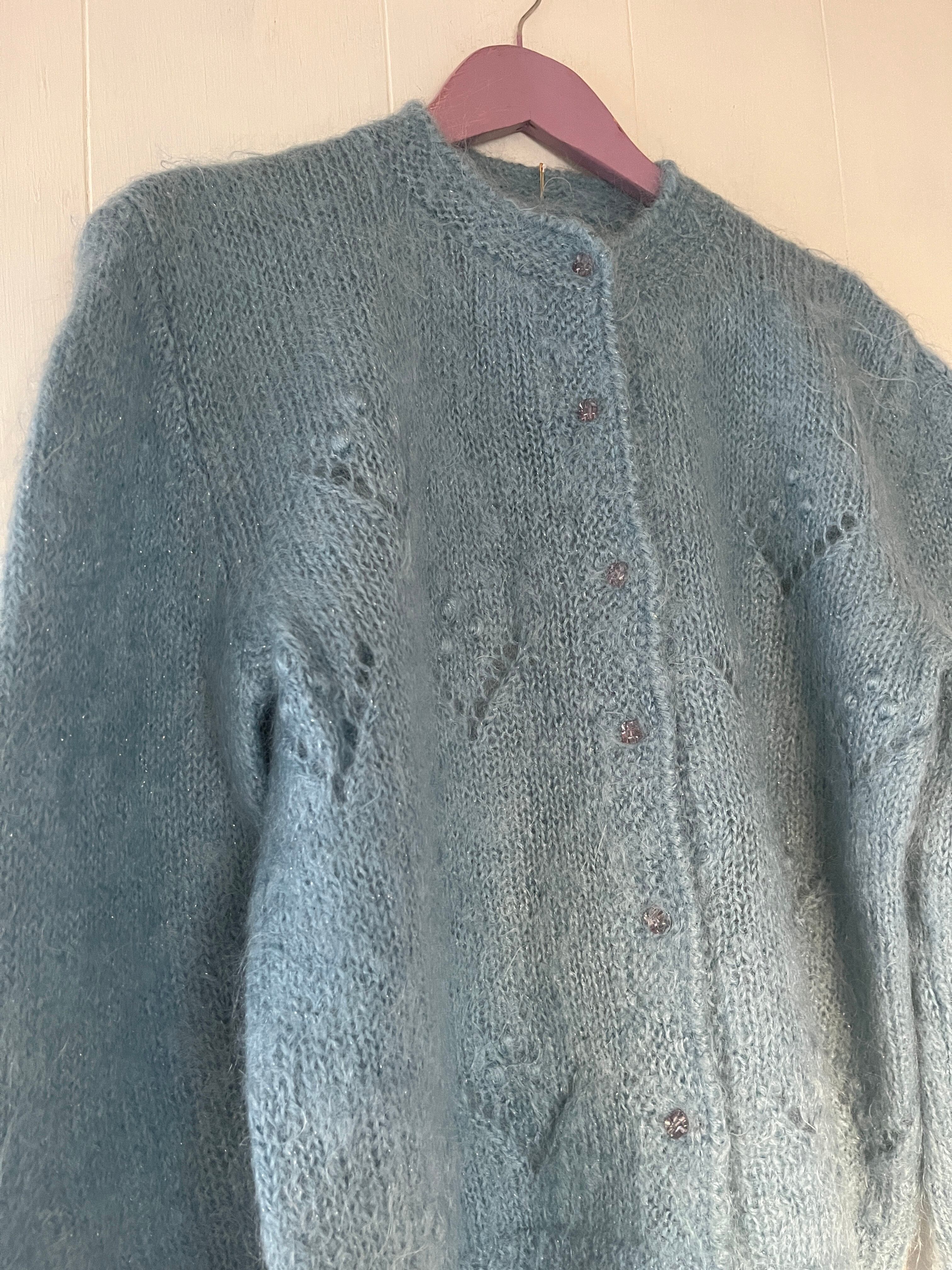 Blue Mohair Knit Cardigan